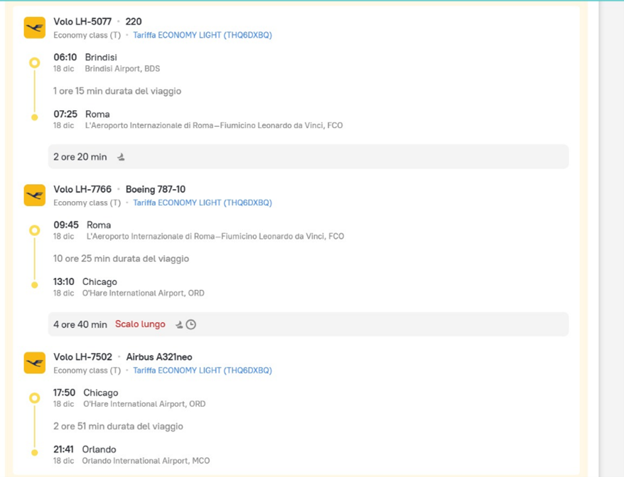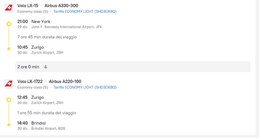 Arrivo in aeroporto non oltre le ore 5,00 del mattino. Partenza da Brindisi con l'operativo voli mostrato in galleria